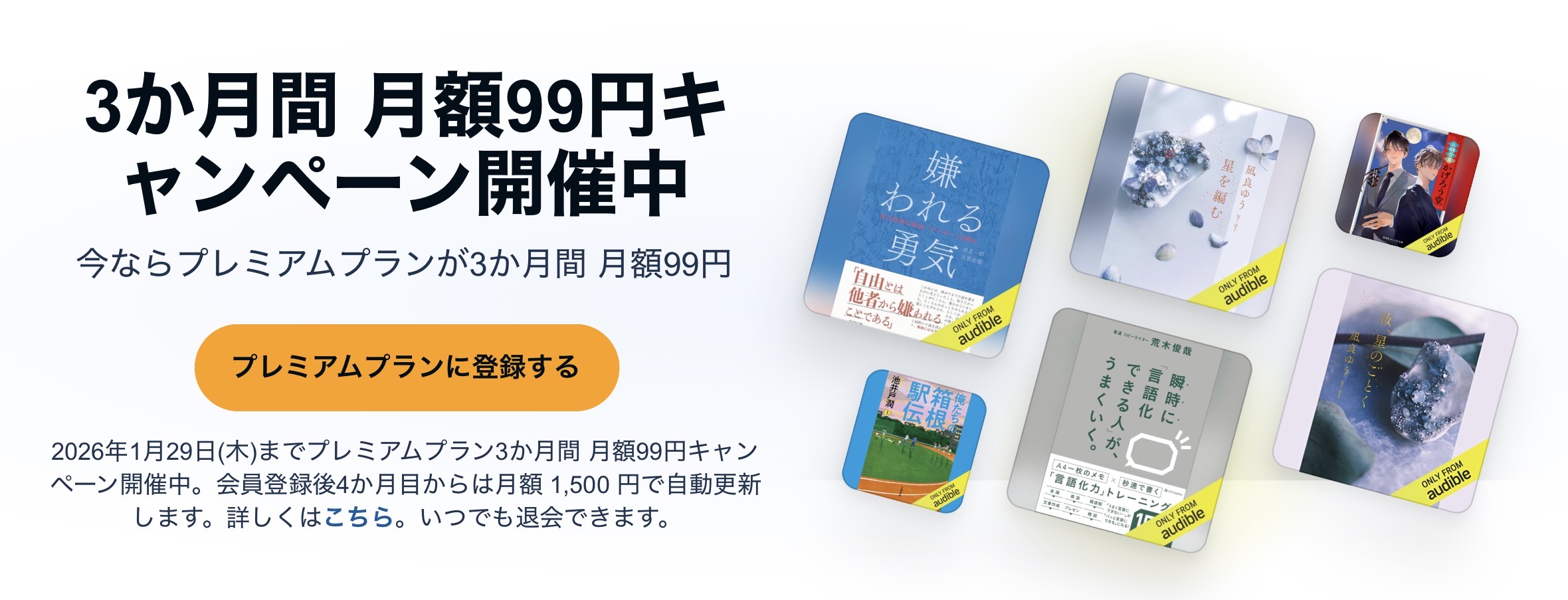 ~2026/1/29まで!オーディブル3ヶ月間月額99円キャンペーン
