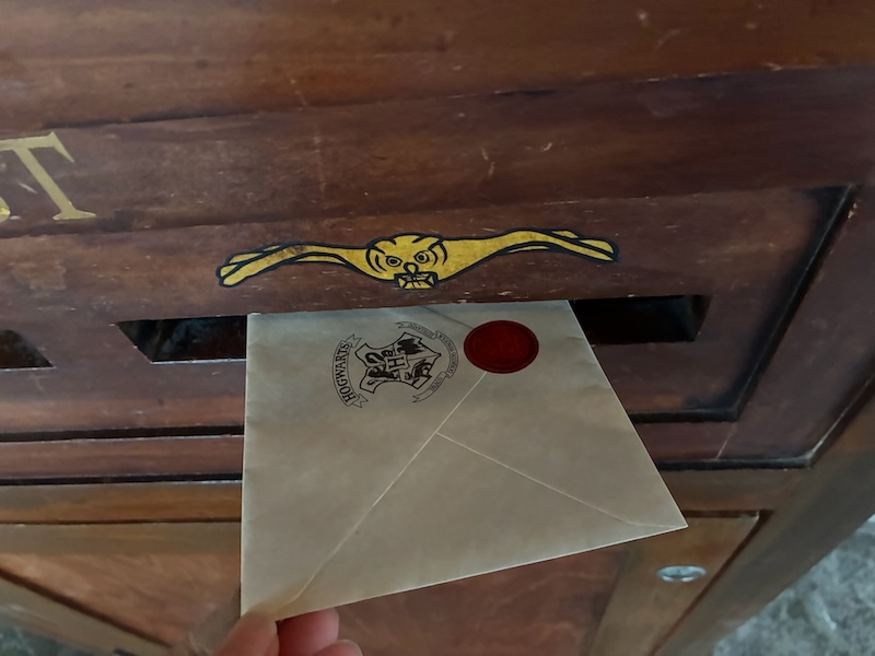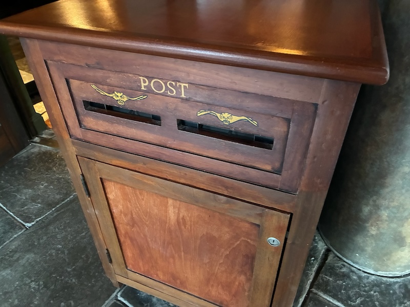 郵便ポストがあります。ここからお手紙を出すと、ホグズミードの消印がつくそうです。